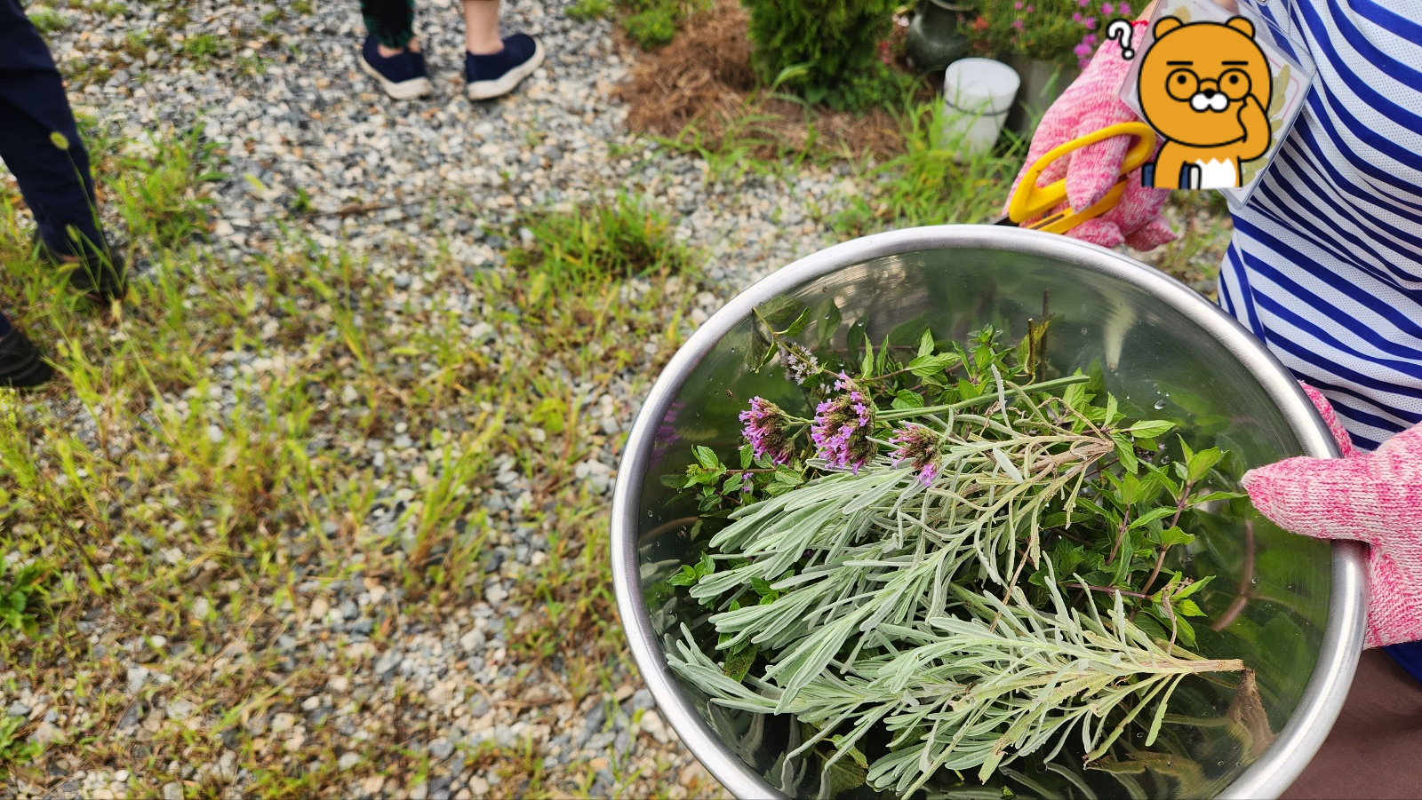 먼저 텃밭과 화단에서 자라고 있는 허브들을 직접 채취했습니다.